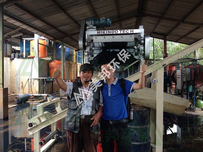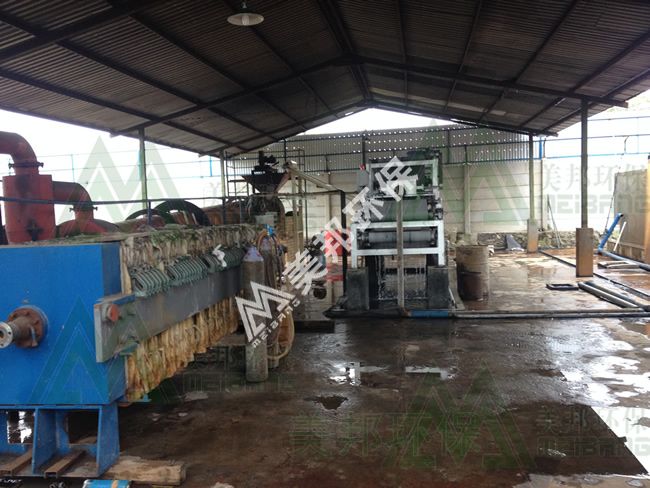 2015-1-14印度尼西亚印染厂污水处理现场,该厂使用我公司DYQ1000WP1型号脱水机。以前落后的板式机,被我们全自动化设备所替代。美邦,专注污泥深度脱水!技术上咨询:13926231556 黄工